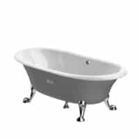 Baignoire fonte émaillée ovale avec fond antidérapant, extérieur gris